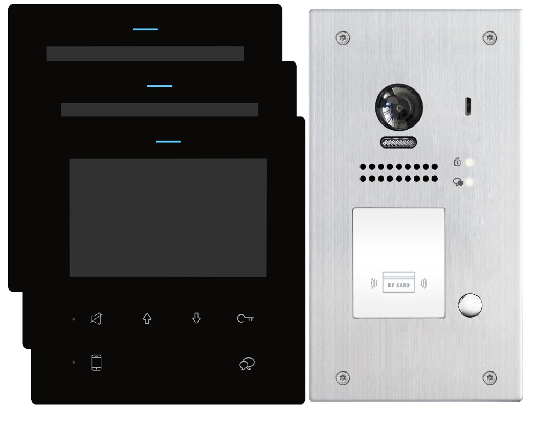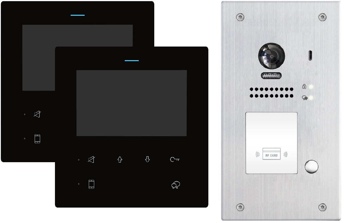 Video Türsprechanlage mit RFID-Türöffner & 2Draht BUS Schwarze Monitore 4,3″ Display Wasserdicht & UV-resistent