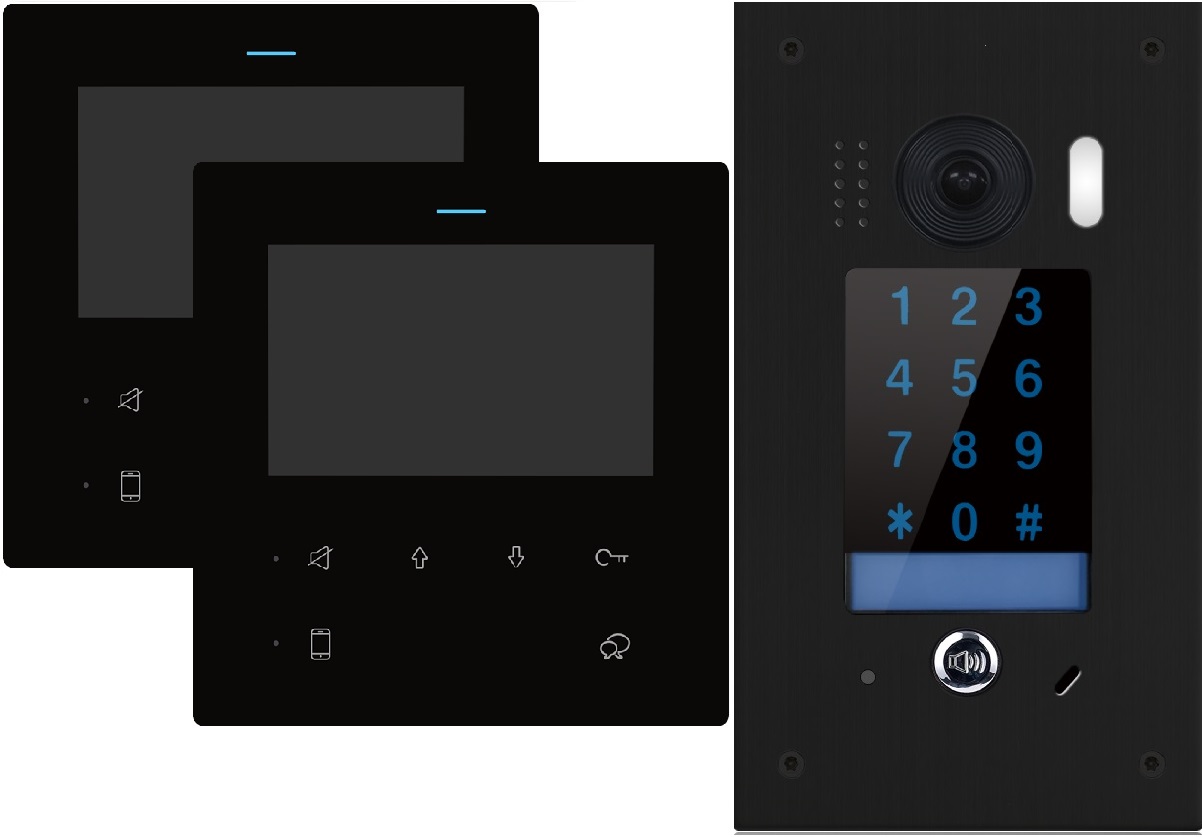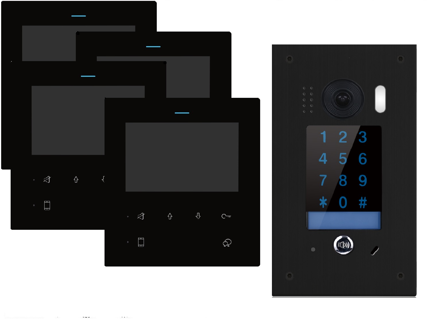 Videotürsprechanlage mit schwarzer Außenstation ZD611 • Codetastatur & Zugangskontrolle • 1-4 Monitore • wetterfest