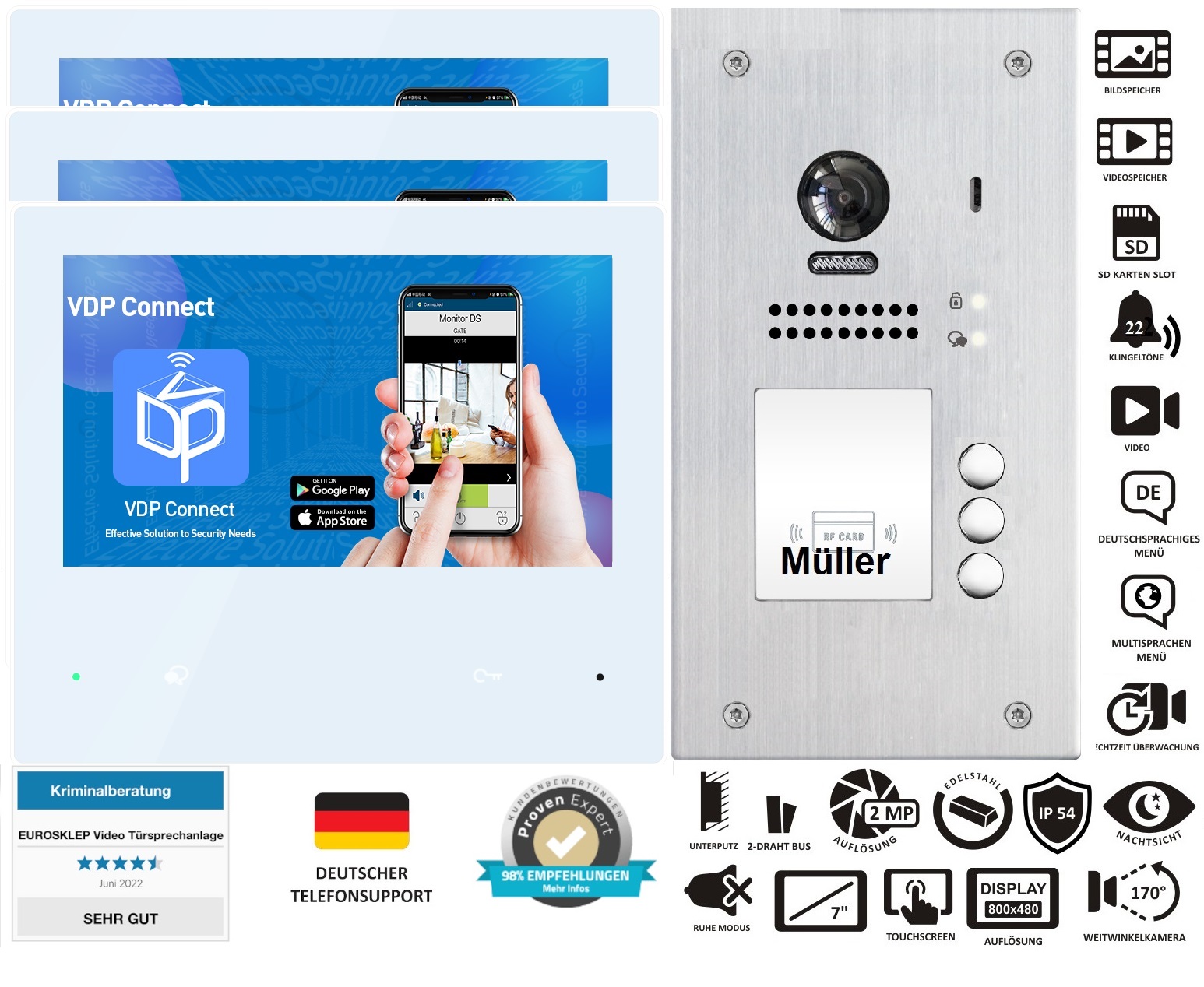 Video-Türsprechanlage 3 Familienhaus mit App für Handy